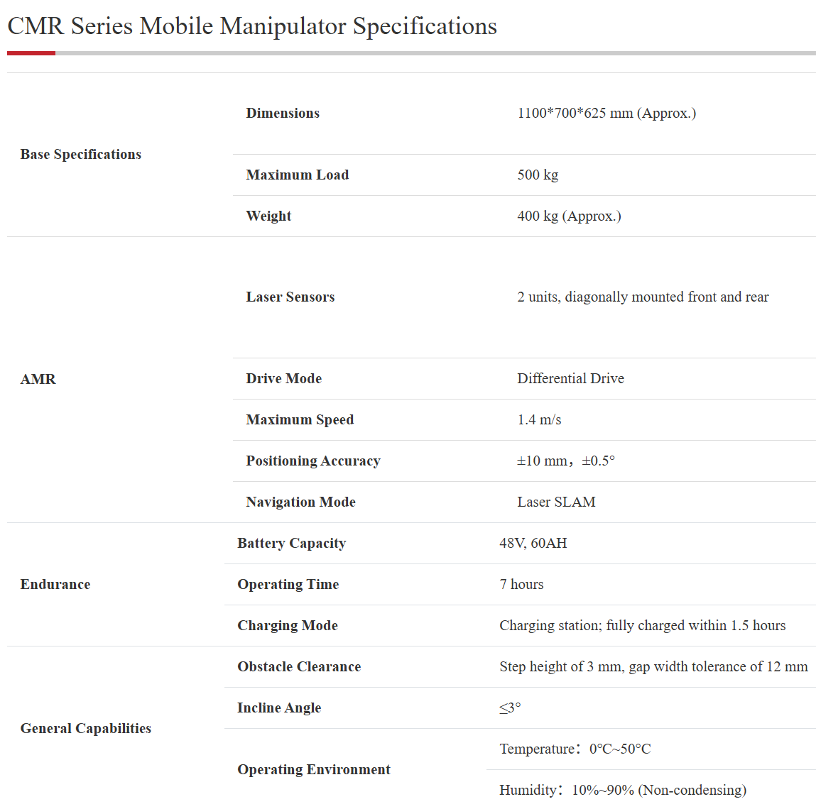 • Précision de positionnement sur surfaces huileuses : ±10 mm ; précision d'exécution du bras robotisé : ±0,02 mm ; convient aux environnements glissants.